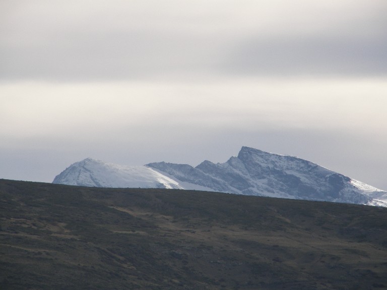 Y de vistas y cielo, pues de las más serranas y cubriéndose por allá arriba del todo: La Alcazaba y Mulhacén como dama y rey. Y con el frío que hacía, seguramente que más nieve para su reino